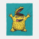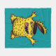 Crazy, hirnloses Hühnermonster-Decken mit einer Zeichentrick-Illustration, gezeichnet in digitaler Tinte in Gelb und Blau Grün.