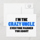 Crazy Onkel Sie wurden gewarnt Postkarte