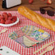 Crazy Patchwork Quilt mit Zigzag Stitching Pappteller