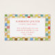 Présentez votre quilting ou couture sur le thème de l'entreprise en style avec ce carte de visite CRAZY QUILT 3.5"x2".* Changez facilement "KATHERINE QUILTER" et tout le texte (slogan, site web, email, téléphone, ville/état) en choisissant "Personnalisez ce modèle", et tapez vos propres informations à la place de ce qui est là maintenant. Modifiez la police, la taille et/ou la couleur de la police à l'aide des options Modifier la conception et Modifier le texte. Ajoutez ou supprimez une ligne, faites tout ce que vous voulez pour la rendre vôtre. * Ce motif de courtepointe est un détail numériquement multiplié de mon dessin au crayon coloré original d'une courtepointe en patchwork coloré. * D'autres cartes de visite, et des produits correspondants sont disponibles dans la catégorie QUILT ART de ma boutique. ** Si vous souhaitez transférer cette conception à un autre type de produit, forme, ou taille, s'il vous plaît vérifier d'abord mon magasin pour voir si j'en ai déjà fait un, parce que je l'ai manipulé pour rendre le design juste adapté et il vous sauvera la tête. Parfois les dessins se transfèrent bien, parfois non. Juste pour. Si vous avez besoin d'aide ou si vous avez une question, envoyez-moi un message.