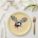 Eine eigenartige Abbildung eines schwarz-weißen Weihnachtsrentiers mit einer kräftig roten Nase. Er bricht sich durch ein Papier wickeln, sieht verrückt und verwirrt aus. Niedlich und lustig.