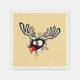 Eine eigenartige Cartoon-Illustration eines Schwarz-Weiß-Weihnachtsrentiers mit einer kräftig roten Nase. Er bricht sich durch ein Papier wickeln, sieht verrückt und verwirrt aus. Niedlich und lustig.