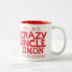Crazy Onkel roter Text Slogan Tasse. Reads Oh ja, ich bin der verrückte Onkel Simon jeder hat Sie gewarnt. Oder personalisieren Sie mit Ihrem eigenen Namen. Text Design von Sarah Trett für www.mylittleeden.com auf zazzle.