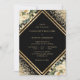 Elegante Schwarz, Elfenbein und Goldblumen Einladung zur Hochzeitsfeier mit Einzelheiten zur Hochzeit in einem goldenen geometrischen Rahmen und mit Elfenbein/Creme-Rose und Goldkonfetti verziert. Matching-Elemente verfügbar.