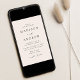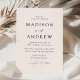 Minimalistische, moderne Hochzeitseinladung mit Ihren Hochzeitsdetails in schwarzer Schrift mit Akzenten der Kalligraphie. Der cremefarbene Hintergrund kann in eine Farbe Ihrer Wahl geändert werden. Entworfen, um mit unserer Hochzeitskollektion "Moderne Elegance" zu koordinieren.