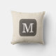 Trendiges und stilvolles Beige-Polka-Kissen mit individualisierbarem Monogramm auf braunem Banner.