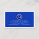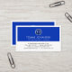 Cover features an upper blue layer that is encapsulated by a white rectangular frame. At the top is an empty white circle logo where you can place your name initials-monogram (You can use different sizes of fonts or styles to your liking). Underneath this lies your prestigious name and job title with the contact details at the base of the card.