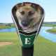 This custom dog photo personalized golf head cover features an editable dog photo with a customizable monogram on a hunter green background for a golf gift. Personalize it with your monogram in the listing editor. Perfect for a dog dad present for a birthday, Father's Day, Christmas, or any time of the year.