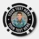 This custom poker chip features your photo printed right on the front in a clean circular layout, with space for short text above and below the image. Add a name, date, team slogan, or a fun message to make it personal. The same reversed color layout is applied on both sides for a bold, eye-catching look. It works with anything from a favorite game shot to a family photo, a pet pic, or something playful for friends or a poker night.