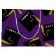Einzigartige Abschluss Geschenktasche für Ihre Lieblings-Klasse von 25 Grad mit kreativen Schwarz-Gold-Kappen auf lila Hintergrund. So personalisieren Sie Text bearbeiten, um den Namen des Absolventen und sein Senior Class Year hinzuzufügen.