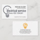 Ein weißes Cover wird durch eine kreative Glühlampe verstärkt, bei der der Glühfaden durch die Worte "elektrischer Service" geformt wird. Unterhalb des Leuchtkörpers befinden sich die Kontaktdaten des Telefons. Oben rechts haben Sie Ihren prestigeträchtigen Namen und Titel mit einer Slogan-Beschriftung, um Ihre Dienste in der Nähe der Basis der Karte bekannt zu machen. Oben auf der Karte befindet sich ein gelbes "Bulb Zuhause"-Logo, das Sie verwenden können. Danach folgen Ihr Name, die Kontaktdaten und ein Slogan, um Ihre Dienste bekannt zu machen. Eine großartige Kreativkarte für elektrische Themen.
