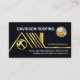 Ein komplett schwarzes Cover zeichnet sich durch ein kreatives Design auf dem Dach aus. Oben ist ein goldenes "Zuhause-elektrische Säge" Logo, das Sie neben dem Firmennamen verwenden können. Unter dem Logo befindet sich ein Slogan mit dem Titel "Your Roofing Solutions", den Sie neben den Kontaktdaten in der Nähe der Basis ändern können. Oben auf der Rückseite befindet sich das goldene Logo, gefolgt von Ihrem angesehenen Namen, den Kontaktdaten und einer Slogan-Option, um Ihre Dienste bekannt zu machen. Eine tolle Karte für Dachdecker, Gebäude-Auftragnehmer zu verwenden. #roofing #roofingtrage #roofers #construction #homeconstruction #Gebäude #handyman #Gebäude #builder #buildingtragnehmer #tratratratragner #tratratragner