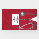 Banner für die Pflege von Schulabschlüssen mit kreativen roten Krankenhausabscheuern für den Krankenschwestern. Text bearbeiten, um Namen und medizinische Referenzen hinzuzufügen.