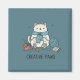 Showcase your passion for creativity and cats with this 'Creative Paws' magnet. A charming white cat, adorned with a soft blue scarf, is enthusiastically knitting with a basket of yarn. The artistic details, including a palette and notebook, highlight the joy of handmade creations. This unique design is perfect for anyone who loves knitting, cats, and adding a splash of cute, artistic flair to their everyday surroundings.