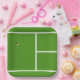 Einzigartige Tennis Party Teller mit gelbem Tennisball auf einem Tennisplatz. Fügen Sie Ihren Text zu anpassen.