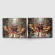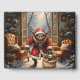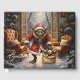 Creepy Christmas Goblin - Dark Fantasy Evil Santa Horror Art. Ein finsterer Goblin in der Kleidung des Weihnachtsmannes bringt eine dunkle Drehung in die Urlaubssaison. Mit leuchtenden roten Augen, bedrohlichem Grinsen und einem Sack voller kleiner gruseliger Goblins steht er in einem schneebedeckten, festlich dekorierten Raum. Schneebedeckte Bäume, glänzende Laternen und zwei Stühle sorgen für eine angenehme Weihnachtsatmosphäre. Ideal für Fans von Horror, dunkler Fantasie und alternativer Urlaubsgestaltung.