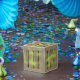 Eine Karikatur aus grauem Holz mit einer grün giftigen, leuchtenden Wolke, die zwischen den Brettern austretet. Ideal für halbwüchsige Leckereien.