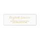 Créez votre propre étiquette d'adresse de retour dorée personnalisée, personnalisée, simple et élégante. Entrez simplement votre nom / nom de famille / nom de société, et adresse. Parfait pour les envois personnels et officiels, à la maison et aux affaires. Élégantes étiquettes d'adresse de retour à utiliser sur l'anniversaire, le mariage, l'anniversaire du mariage, l'obtention du diplôme, la douche nuptiale, le baby shower, les jours fériés, ou tout autre envoi spécial de la famille.