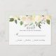 Conçue pour coordonner avec notre collection de mariages crème et ivoire, cette élégante carte botanique RSVP comporte une branche de fleurs blanches peintes à l'aquarelle, surmontant votre réponse et votre date souhaitées. Cartes inversées à la couleur gris clair classique coordonné. Un design moderne et élégant pour des mariages chic de printemps, des fêtes de jardin ou de plein air. Couleurs : verdure verte, rose vif, beige, champagne, vanille, pêche, blanc. Autres couleurs disponibles.