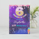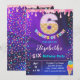 Joli et coloré six scoops d'invitation de fête d'anniversaire amusant pour fille. C'est vibrant avec le violet et le rose avec le cône de crème glacée numéro 6 avec beaucoup d'arrosées.