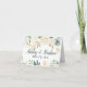 Les cartes de remerciements florales dans un format plié sont dotées d'un monogramme personnalisé en caractères verts riches en lettres manuscrites et de styles de blocs noirs doux encadrés par un design d'aquarelle élégant de roses peints, de fleurs de ranunculus et de feuilles dans des tons neutres de blanc, crème, rose roux, or et vert. Personnalisez avec les noms de la mariée et du marié et la date du mariage.