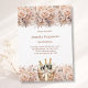 Eine moderne, stilvolle und glamouröse Einladung zu einer Geburtstagsfeier. Weißer Hintergrund, mit einem Korb mit Flöten dekoriert, glänzende Weinflaschen und beige cremefarbene Blume. Personalisieren Sie Ihre Party-Daten und fügen Sie sie hinzu.
