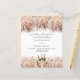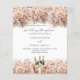 Eine moderne, stilvolle und glamouröse Einladung für einen Hochzeitsempfang. Weißer Hintergrund, mit einem Korb mit Flöten, Schaumweinflaschen und beigen, cremefarbenen Blume geschmückt. Personalisieren und fügen Sie Ihre Namen und die Details. 1 Blatt = 1 Einladung mit Druckkante bis Kante.