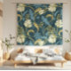 Ein gewagtes, maximalistisches und blühendes Vintages Jugendstil-Muster auf dunkelblauem Hintergrund