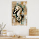 Ein Cream & White Seepferd treibt auf einem Abstrakten Hintergrund. Die braunen Vintagen Buchseiten umgeben das Seepferd mit einer Abstrakten Farbpalette aus dem ersten Ton. Ocean Academia Inspiriere diese digitale Printwerbung.