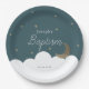 Crescent Moon & Stars Navy Blue Taufpapier Pappteller