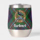 Insigne de crête du clan MacDonell de Glengarry entouré d'une sangle et d'une boucle sur fond de tartan. Texte personnalisé des deux côtés.