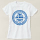 Crète, T-shirt femme de Grèce arborant le drapeau national de la Grèce à l'intérieur d'un symbole ancien cercle de motifs grecs. Vous pourrez porter ce T-shirt pendant vos vacances sur la magnifique île de Crète ou en faire un cadeau souvenir.