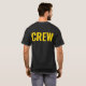 Personalisierter T - Shirt für Ihre Crew oder Mitarbeiter. Identifizieren Sie Ihre Teammitglieder einfach mit diesen anpassbaren T - Shirt. Grosser Text für die Crew auf der Rückseite in einem großen gelben Schriftart für hohe Sichtbarkeit. Vorderer kleiner Druck und individuelle Name. Ein großer Teil der Haushaltsmittel funktioniert einheitlich Shirt. Einfaches minimales Design für Ihr kleines Unternehmen. Ändern Sie einfach den Stil und die Farbe des Schriftartes im Designwerkzeug.