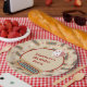 Diese personalisierten Teller sind ideal, um Party für jeden zu werfen, der Lieben hat, Cribage und andere Brettspiele zu spielen. Sie enthalten Illustrationen zum Cribbage-Spielbrett, zu Spielkarten und zum Set von Spielpegs vor einem hellbraunen Hintergrund, wobei Ihre Nachricht in fett roten Buchstaben dargestellt wird.