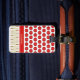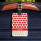 Cricket-Bälle erzeugen ein helles Polka-Punktmuster auf weißem Hintergrund, mit einem separaten Muster von Cricket-Fledermäusen. Es gibt auch einen roten Streifen für Sie, um mit einem Namen oder anderen Text personalisieren. Fügen Sie auf der Rückseite Ihre bevorzugten Kontaktdaten hinzu.