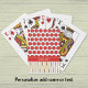 Cricket-Bälle erzeugen ein helles Polka-Punktmuster auf weißem Hintergrund, mit einem separaten Muster von Cricket-Fledermäusen. Die Muster erstrecken sich über die Rückseite der Karten, und es gibt auch einen roten Streifen für Sie, um mit einem Namen oder einem anderen Text zu personalisieren.
