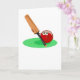 Niedliche Cartoon-Abbildung einer Cricketkugel mit Cricketball. Bilder auf verschiedenen Geschenken und Produkten erhältlich. Grußkarten. Kleine Grußkarten.