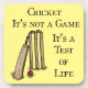 Cricket It's not a Game It's a Test of Life - Design zeigt auch Cricket Bat, Cricket Ball und Wickets.