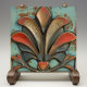 In diesem Werk wird "Crimson Flare" vorgestellt, eine wunderschön gearbeitete Keramik, die den Charme und den Stil moderner Kunst aus der Mitte des Jahrhunderts ausstrahlt. Dieses Stück zeigt eine beeindruckende Auswahl an Teardrop-förmigen Elementen, wobei jede Form in einer Mischung aus reichen Farben gebadet wird. Die kräftigen Krummeln und Scharlachfarben werden meisterhaft mit den gedämpften Tönen von Kohle und Taupe verglichen und schaffen so einen dynamischen visuellen Effekt. Die Oberfläche der Kachel ist mit einem feinen Nebel aus goldenen und kupferfarbenen Flecken gesprenkelt, der an eine Vintage Patina erinnert, die dem Design mehr Tiefe und Charakter verleiht. Ein zentrales Herzmotiv, das in einem subtilen verbrannten Wien detailliert beschrieben ist, verankert die Komposition und symbolisiert die Wärme und Leidenschaft, die dem Design innewohnen. Set vor einer aquamarinen Kulisse mit Aquamarine-Akzenten. Diese Kachel ist ein Dekorationsstück, das jedem Zimmer eine Touch Retro-Eleganz verleiht.