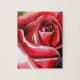mit originellem Kunstdesign von der Aquarellmalerei der tiefroten englischen Rose im nahen Fokus, Makro-Stil von Sacha Grossel. Dieses botanische Subjekt ist hell und intensiv mit scharlachroter Blüte gefärbt, um Liebe und Leidenschaft zu vermitteln.