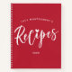 Charmantes Kochbuch in Rot. Personalisieren Sie mit Ihrem Namen und dem Jahr. Rezepte werden in einem schwarzen Pinselskript geschrieben, wobei ein doodled Herz den Punkt über dem i ersetzt.