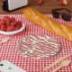 Ein rundes Einweggericht mit einem realistischen Bacon-Muster, perfekt für Frühstücksfreunde und thematische Ansammlungen. Genießen Sie den schwindelerregenden Look ohne Fett!