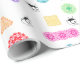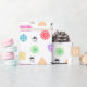 Ein buntes, mit Mini-Crochet-Charts bedecktes Packpapier