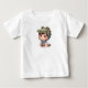 Ein kleiner Junge in einem grünen Krokodil-Kostüm mit einem orangefarbenen Bogen, der eine Kamera in der Hand hält, ein blaues Ganzes trägt und einen gestreiften T - Shirt, voller Fantasie und Spaß
