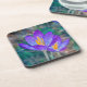 An einem Frühlingmorgen blüht ein lila Crocus.