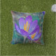 An einem Frühlingmorgen blüht ein lila Crocus.