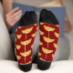 Croissant Ikone. Nahtloses Muster. Benutzerdefinierte Hintergrundfarbe. Benutzerdefinierte Farbe des oberen Streifens. Benutzerdefinierter Text auf jeder Socke.