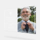 Symbole acrylique de service funéraire chrétien avec une croix blanche, Forever dans nos coeurs et les noms et les années de votre être cher vivant imprimé en polices blanches contre un arrière - plan acrylique blanc transparent, donnant un regard dépoli, à côté d'une photo de votre être cher. Blanc transparent pour toujours dans nos coeurs signe acrylique pour un service commémoratif personnalisé avec une photo de votre être aimé.