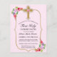 Préparez-vous à célébrer avec votre famille et vos amis lorsque vous envoyez des invitations pour la 1ère communion sainte de votre fille avec cette carte postale élégante et pratique Floral First Holy Communion Invitation. Ce design présente une décoration de croix d'or élaborée avec un bouquet de fleurs rose et rouge rosé. Le texte moderne et tendance est entouré d'un cadre doré avec des bouquets d'aquarelle fleuris dans deux coins. L'arrière - plan à l'avant est un rose pâle. Personnalisez avec votre adresse de retour sur le dos pour un envoi très pratique. Si mignon et parfait pour la première communion de votre fille.