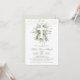 Cette conception présente une illustration du feuillage vert et or en aquarelle. Au-dessus des feuilles - des confettis ornent le dessus de la carte (leurs images peuvent être enlevées). Sur le feuillage vert il y a une image de croix.